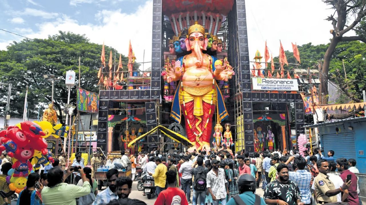 In the heart of Hyderabad, Khairatabad is set to unveil its tallest Ganesha idol in history, towering at an impressive 70 feet. This massive statue marks 70 years of the festival’s tradition in Khairatabad and serves as a symbol of the community’s enduring devotion. Each year, this iconic pandal draws thousands of devotees from across the city, becoming a focal point of the celebrations.